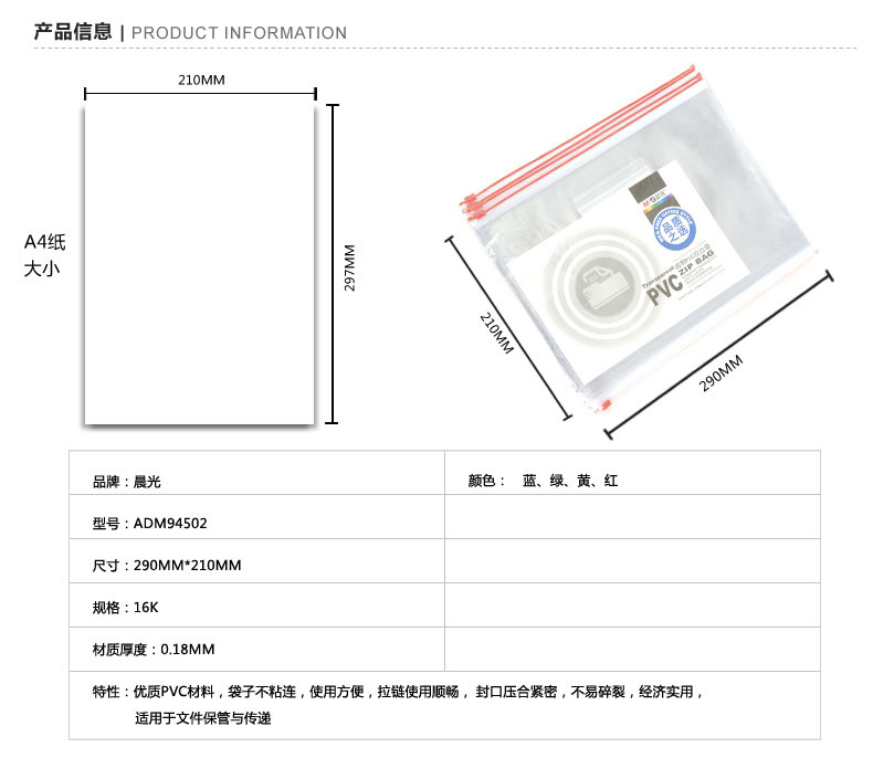商品名称:晨光16K拉边袋PVC透明ADM94502