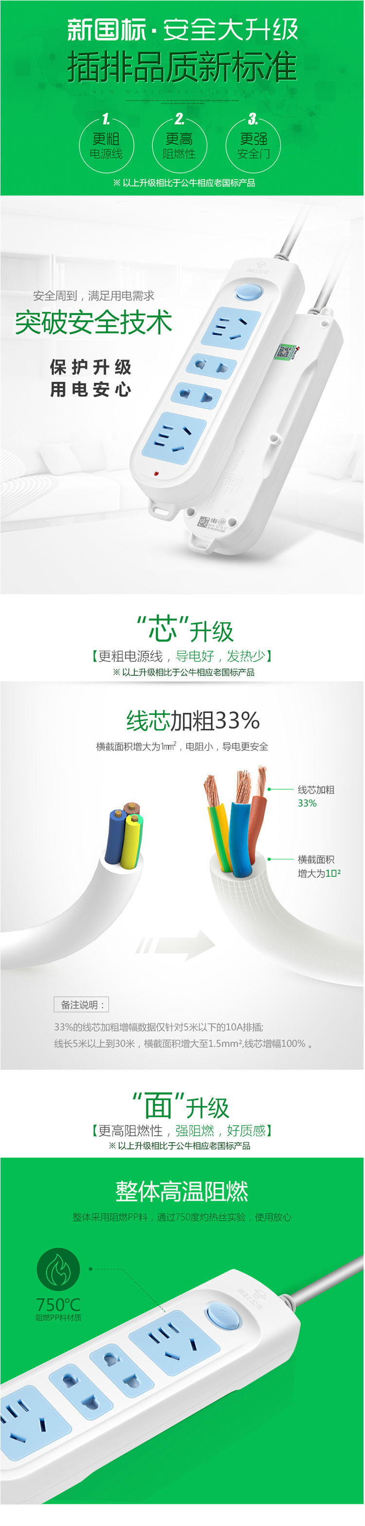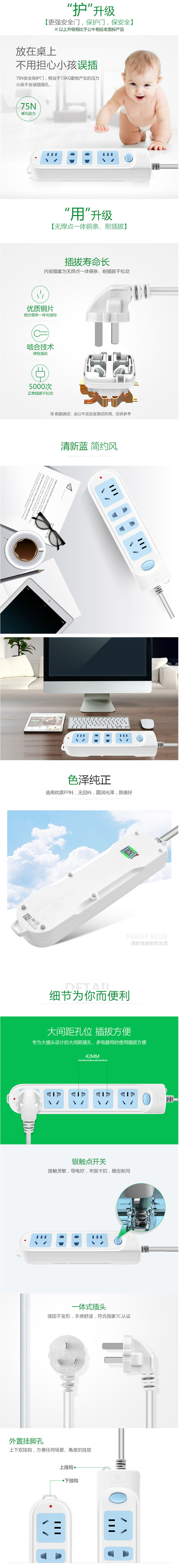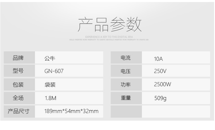 商品名称:公牛新国标 607 3米-4位 插排 3米 电源插座