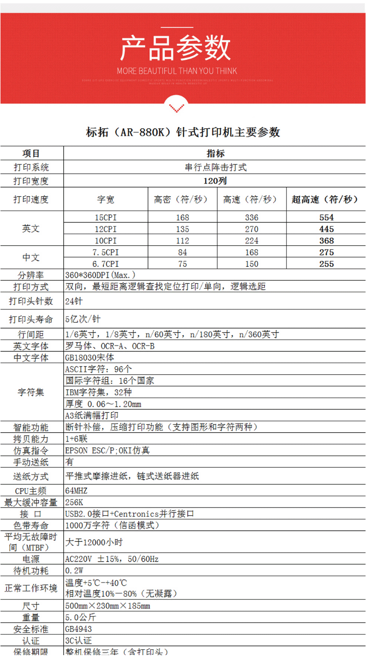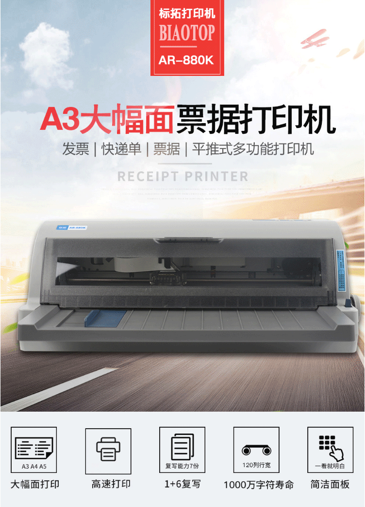 商品名称:标拓(Biaotop)AR880K宽行针式打印机 快递单/发票/出库单高速打印