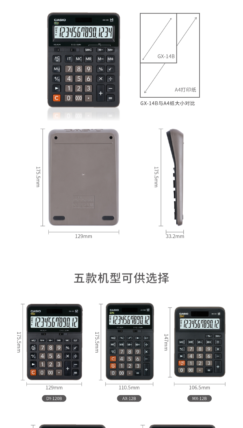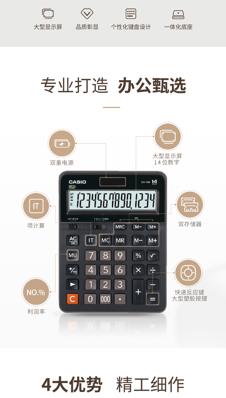商品名称:卡西欧(CASIO)14位 办公计算器 GX-14B