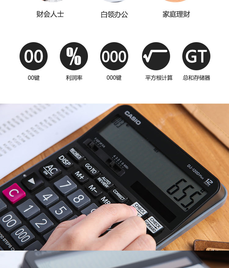 商品名称:卡西欧(CASIO)12位 办公计算器 DJ-120D PLUS