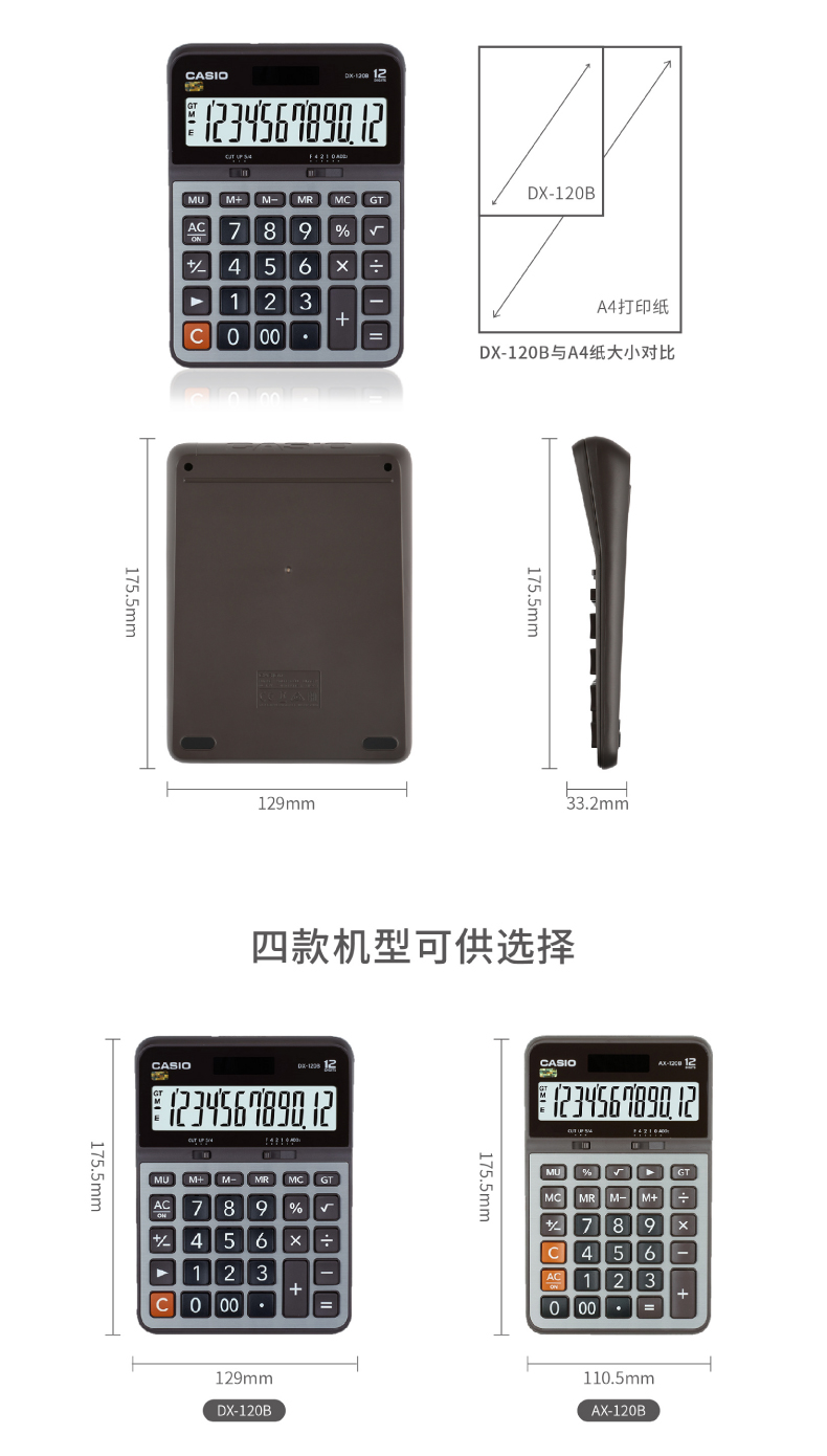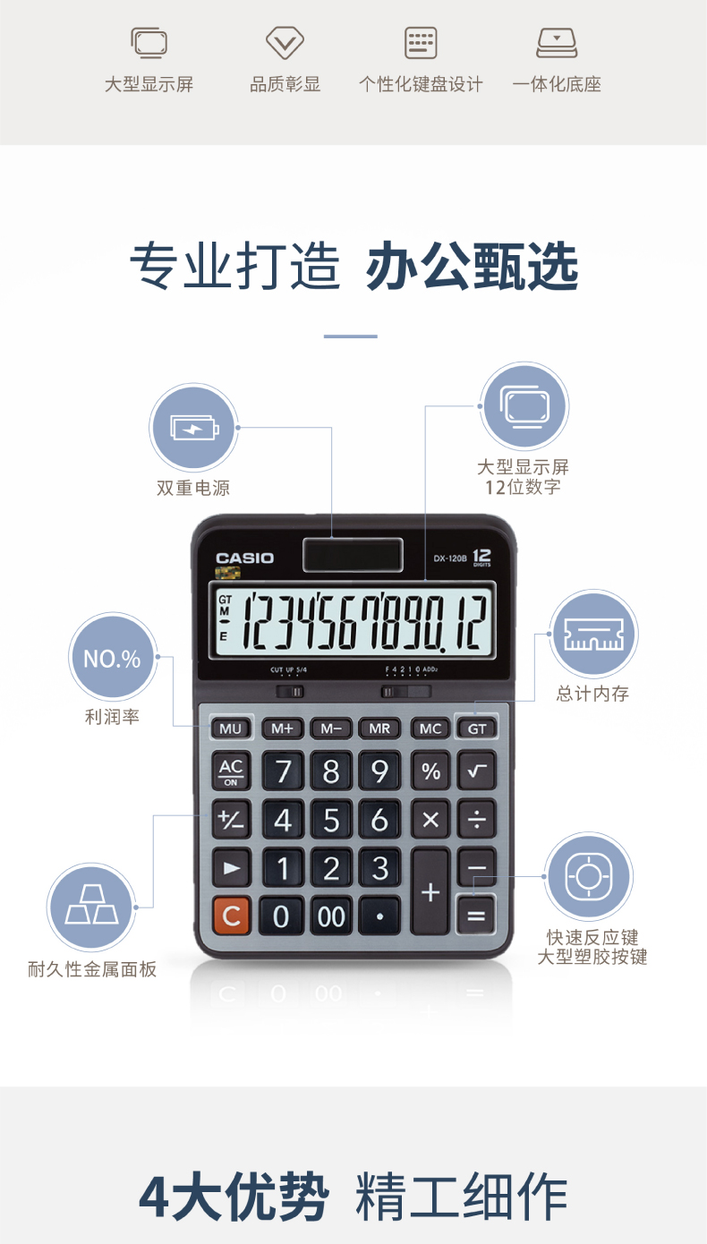 商品名称:卡西欧(CASIO)12位 办公计算器 DX-120B