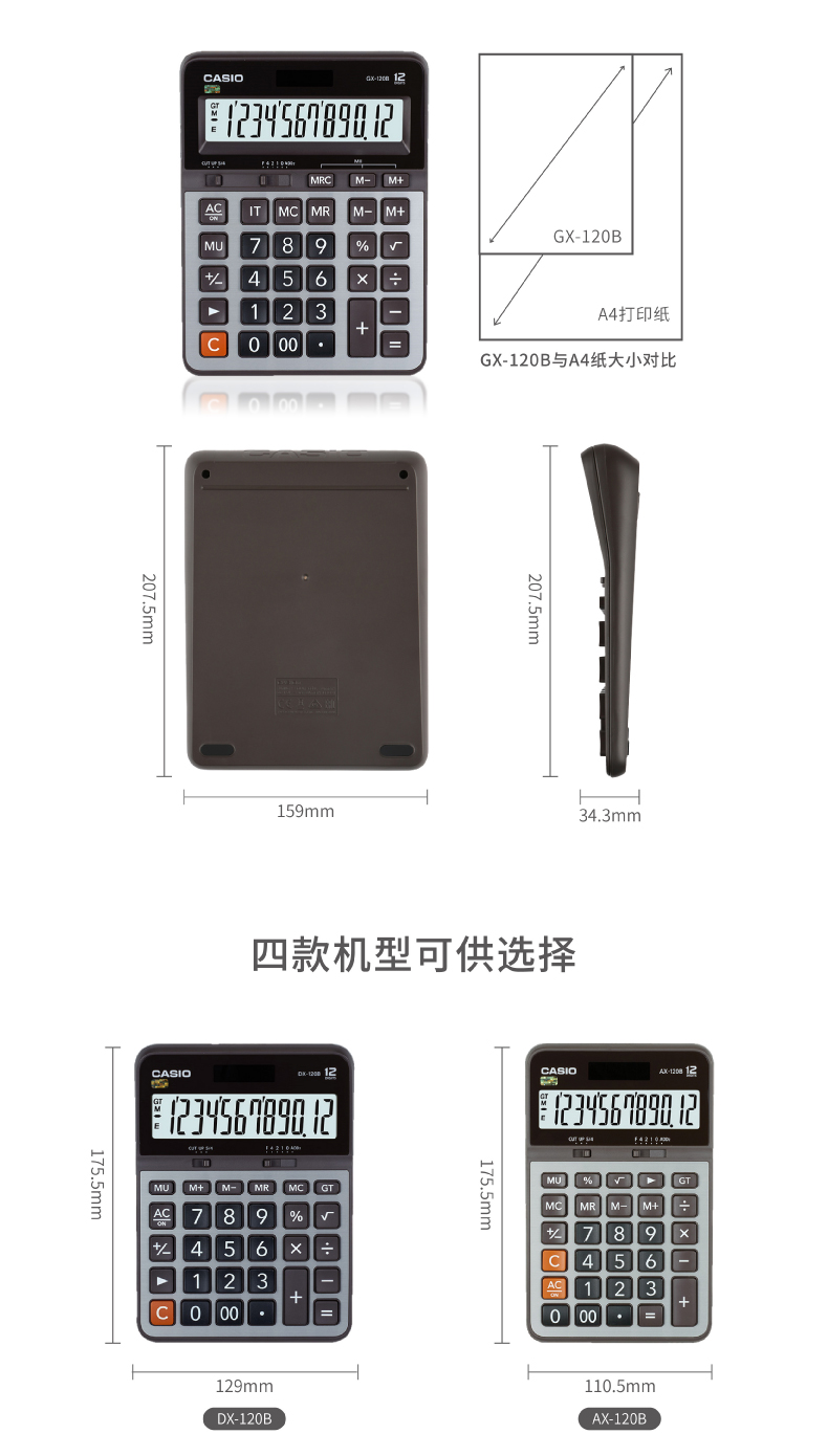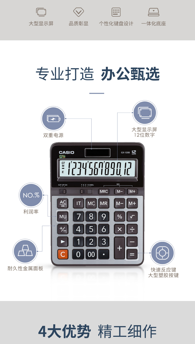 商品名称:卡西欧(CASIO)12位 办公计算器 GX-120B