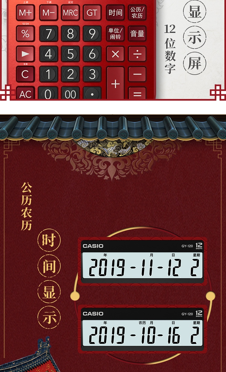 卡西欧(CASIO)12位 语音计算器 DY-120-RD