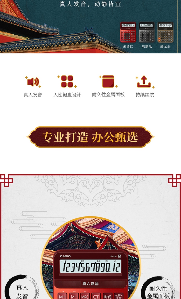 卡西欧(CASIO)12位 语音计算器 GY-120-BK