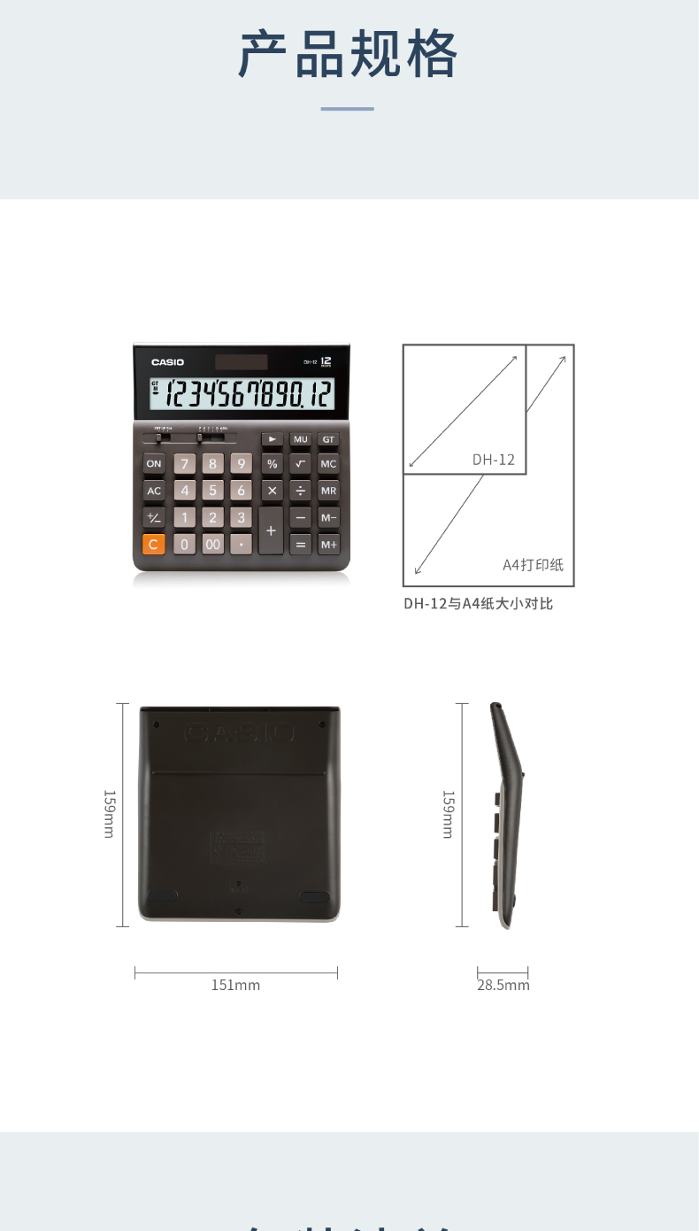 商品名称:卡西欧(CASIO)12位 办公宽屏计算器 DH-12-BK