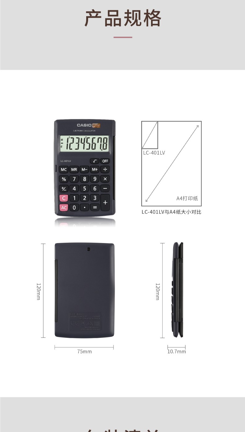 商品名称:卡西欧(CASIO)8位 便携计算器 LC-401LV