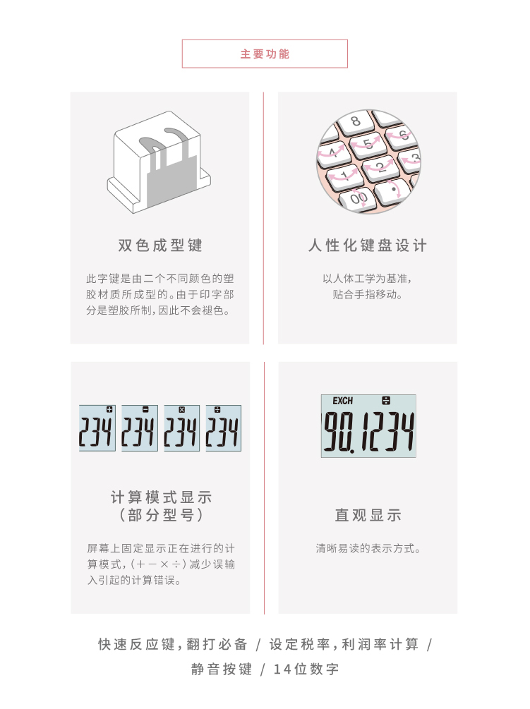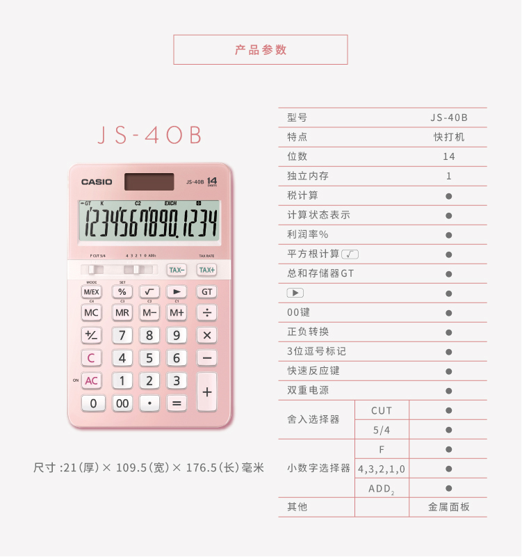 商品名称:卡西欧(CASIO)14位 办公时尚计算器 JS-40B-PK