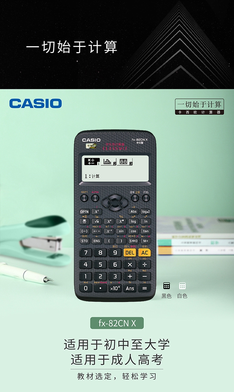 卡西欧(CASIO)10位 一般函数计算器 FX-82CN X-BK