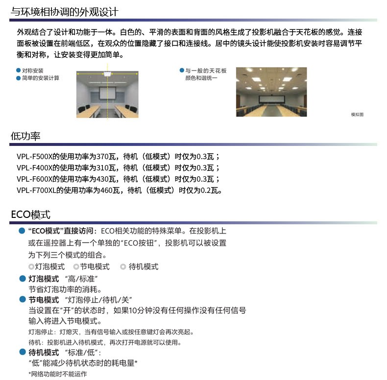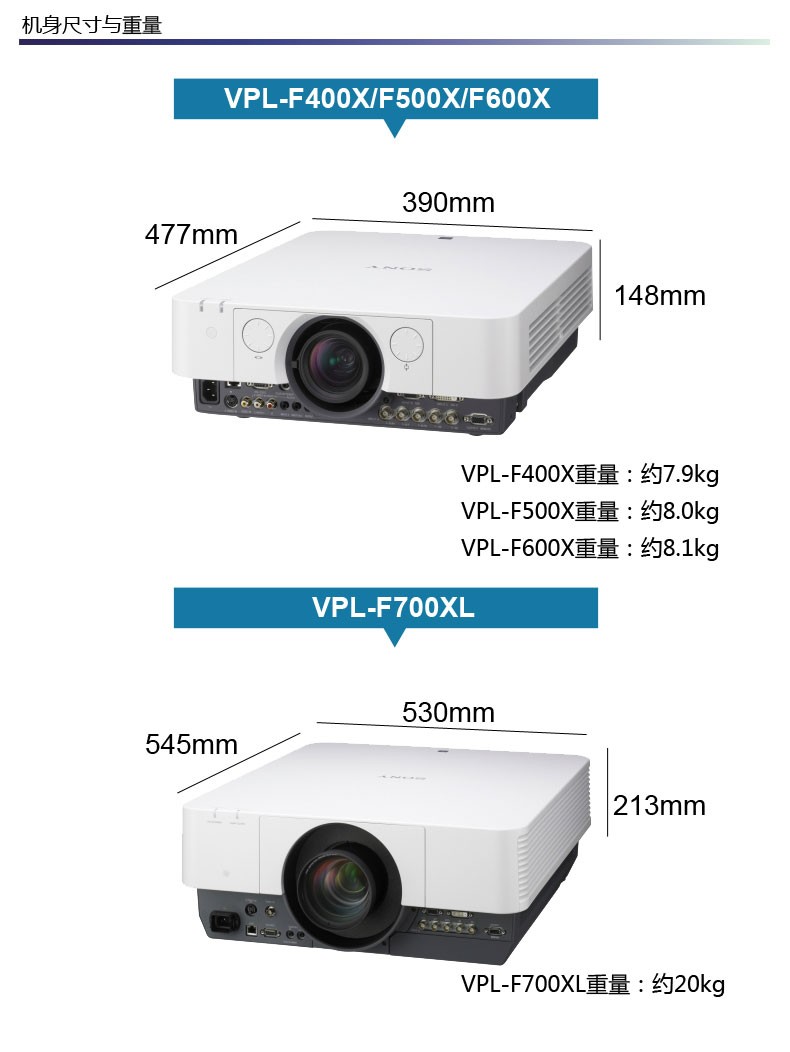 商品名称:索尼(SONY)投影仪 商务投影 高亮工程投影机 VPL-F500X(5000流明 标清) 官方标配