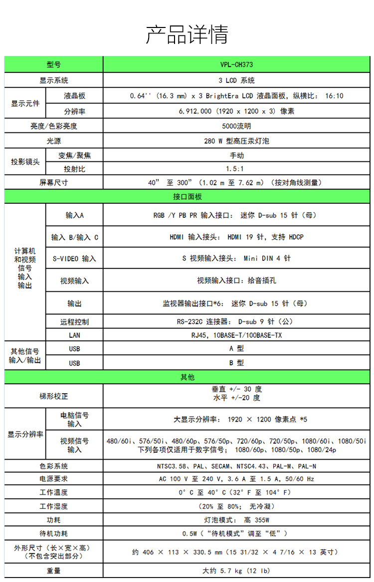 型号:VPL-CH373