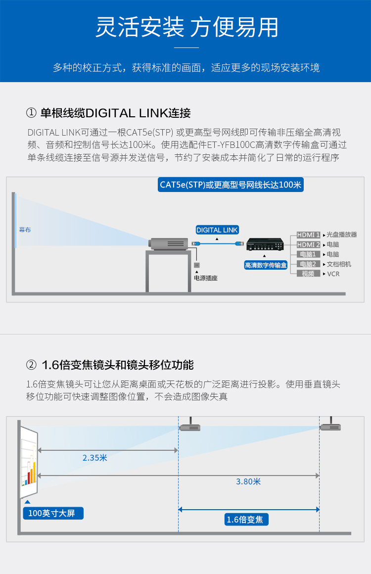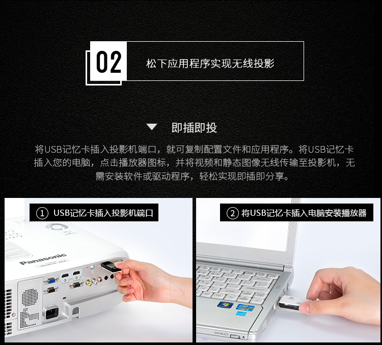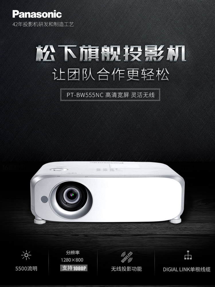 松下(Panasonic)PT-BW555NC 投影仪 投影机办公(高清宽屏 5500流明 WXGA无线)