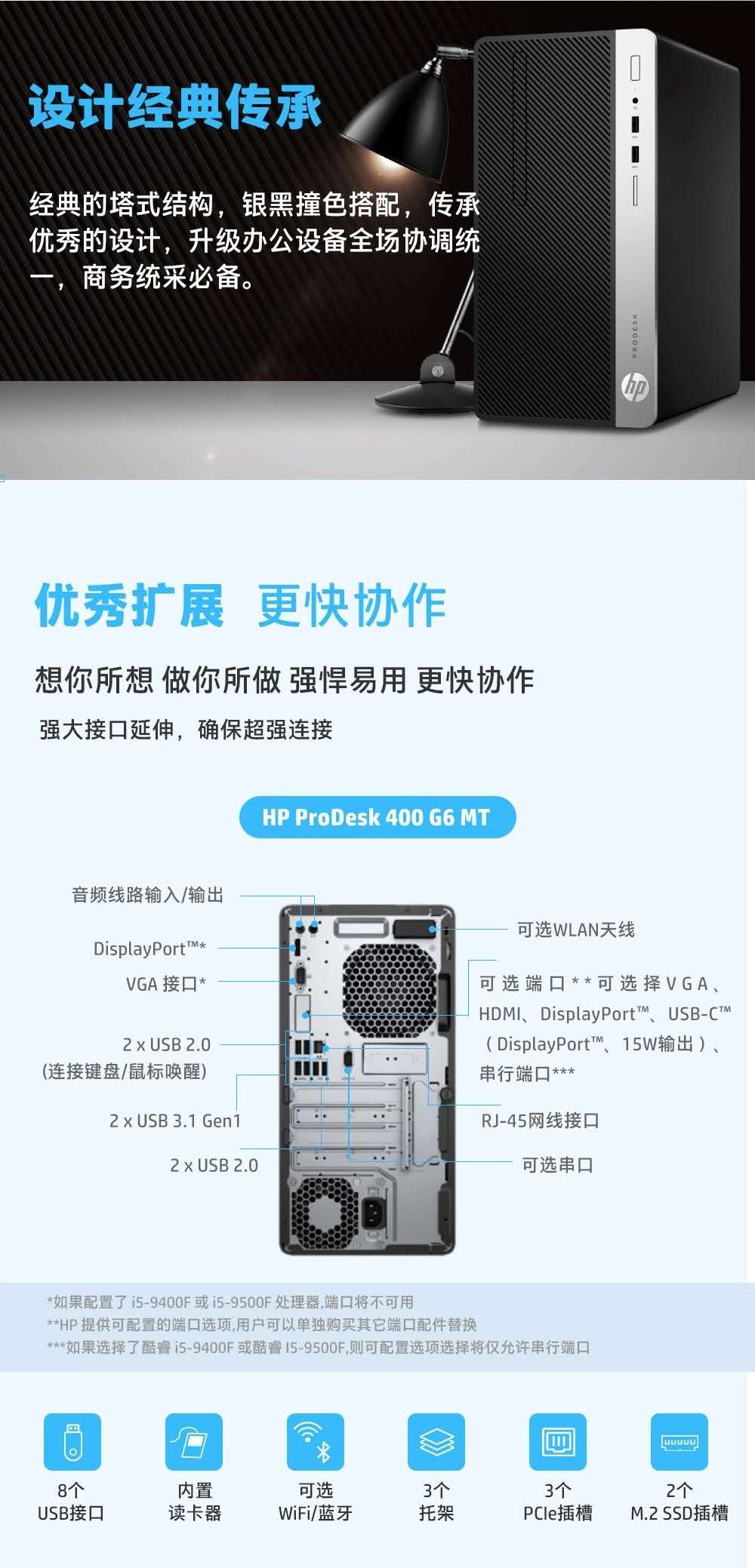 惠普(HP) 商用办公台式电脑 480 G6MT(B360主板芯片组/酷睿I3-9100/8G/1TB缓存64MB高速硬盘+256G SSD/集显/Win10H/21.5英寸显示器 三 年上门售...