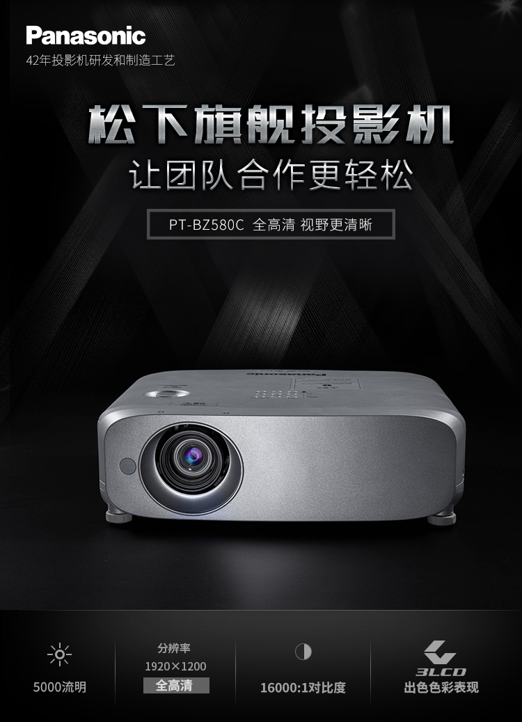 商品名称:松下(Panasonic)PT-BZ580C 投影仪 投影机办公(超高清 5000流明 WUXGA)