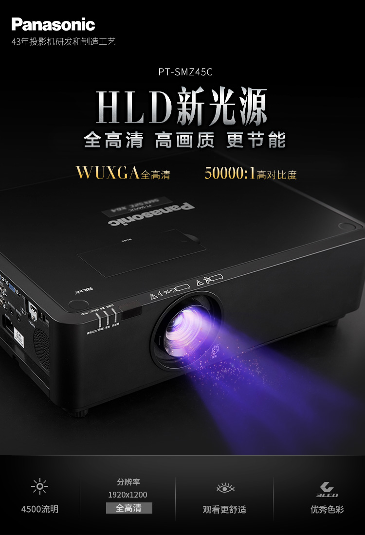 商品名称:松下(Panasonic)PT-SMZ45C 投影仪 投影机办公 (4500流明 HDMI 1.6倍变焦 新光源)