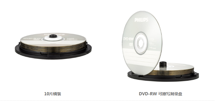 商品名称:飞利浦(PHILIPS)PH DVD-RW 可擦写空白刻录光盘光碟 可重复刻录 10片装DVD刻录盘