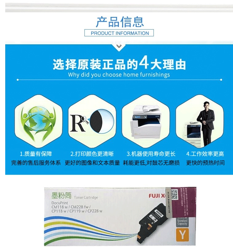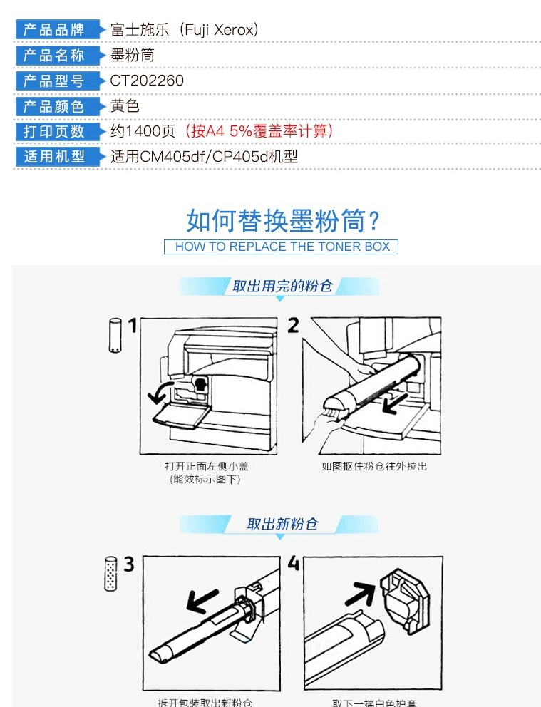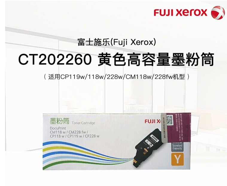 商品名称:富士施乐(Fuji Xerox)CT202260 黄色高容量墨粉盒(适用于:DocuPrint CM118w/CM228fw/CP118w/CP119w/CP228w)