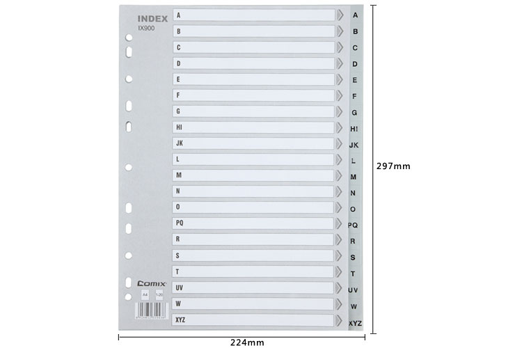 商品名称:齐心IX900分类纸隔页纸PP塑料A-Z字母索引纸A4 21页11孔分页纸
