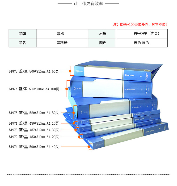 商品名称:欧标(MATE-1ST)B1977 资料册100页 插页文件夹A4 人事档案夹 530*310mm (单位:个)