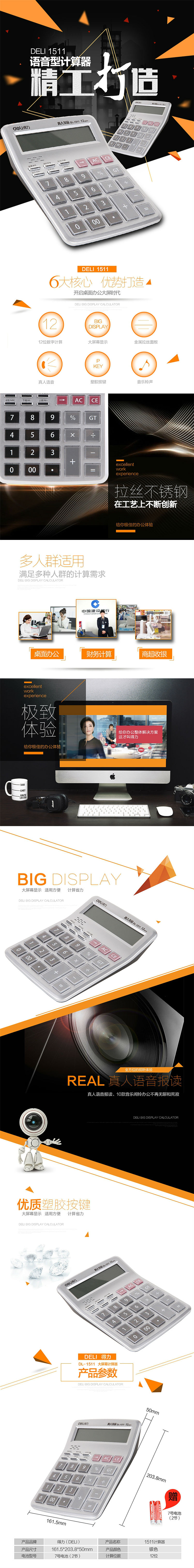商品名称:得力(deli) 12位大屏幕语音型计算器/计算机 水晶按键 1511