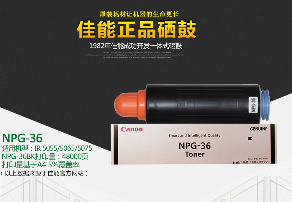 商品名称:佳能(Canon)NPG-36 黑色碳粉盒(适用于:iR5055、iR5065、iR5075)