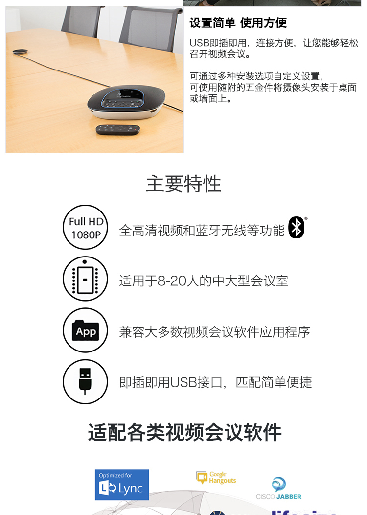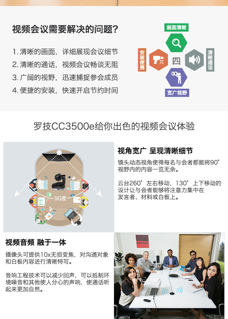 商品名称:罗技(Logitech) 商务高清视频会议摄像头 CC3500e 1080P USB免驱 10倍无损变焦 (含全向麦克风+扬声器)