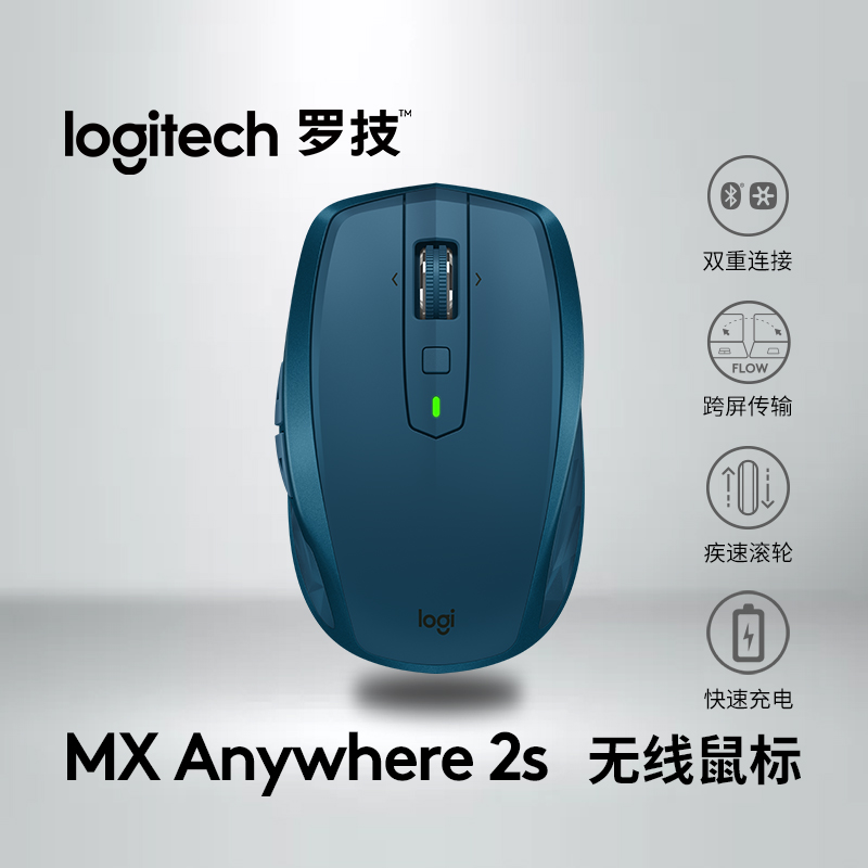罗技(Logitech)MX Anywhere 2S 鼠标 无线蓝牙鼠标 办公鼠标 右手鼠标 优联 睿智蓝 带无线2.4G接收器
