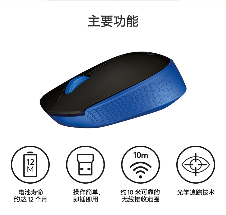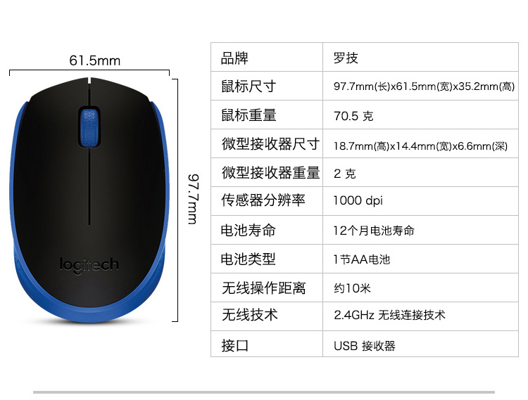 商品名称:罗技(Logitech) M171无线鼠标笔记本电脑商务办公无线光电鼠标 黑色