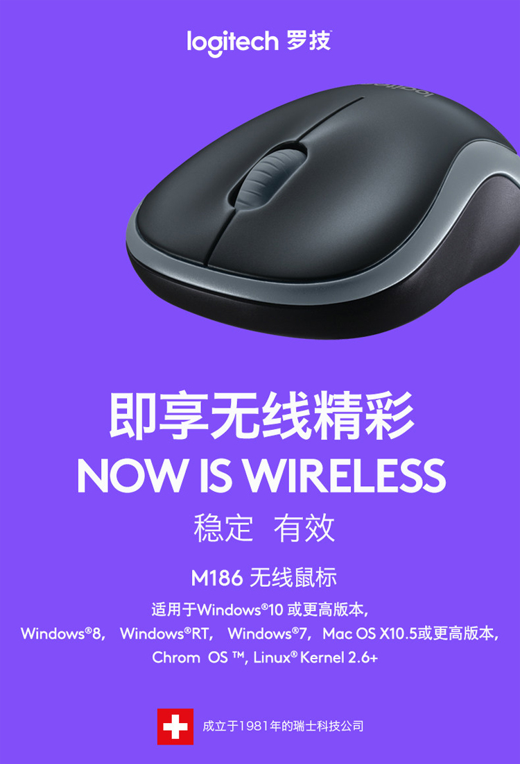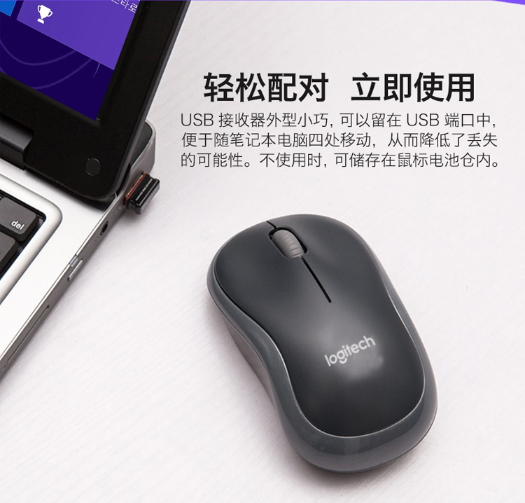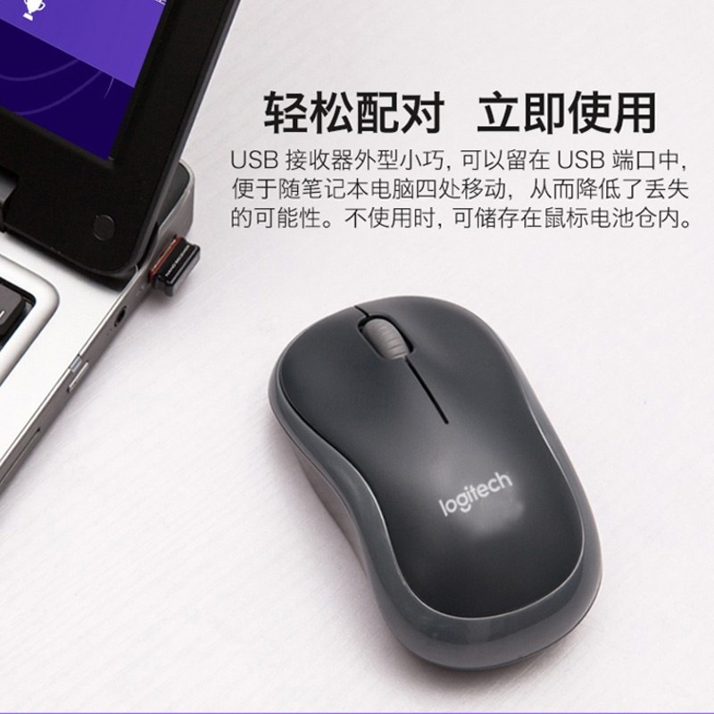 罗技(Logitech) M186无线鼠标 办公家用鼠标 灰黑色