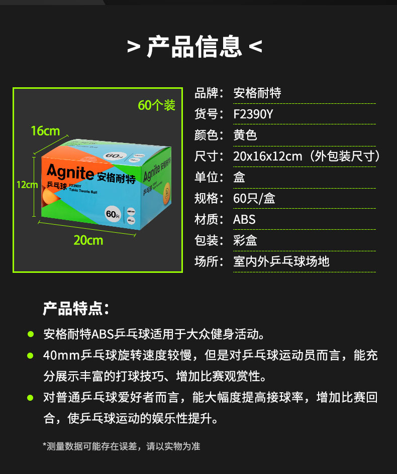 商品名称:安格耐特F2390Y乒乓球(黄色)(60个/桶)