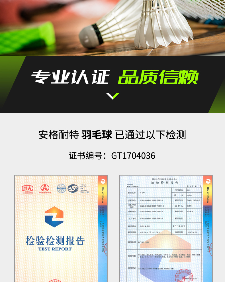 商品名称:安格耐特F2201羽毛球(白色)(6个/筒)