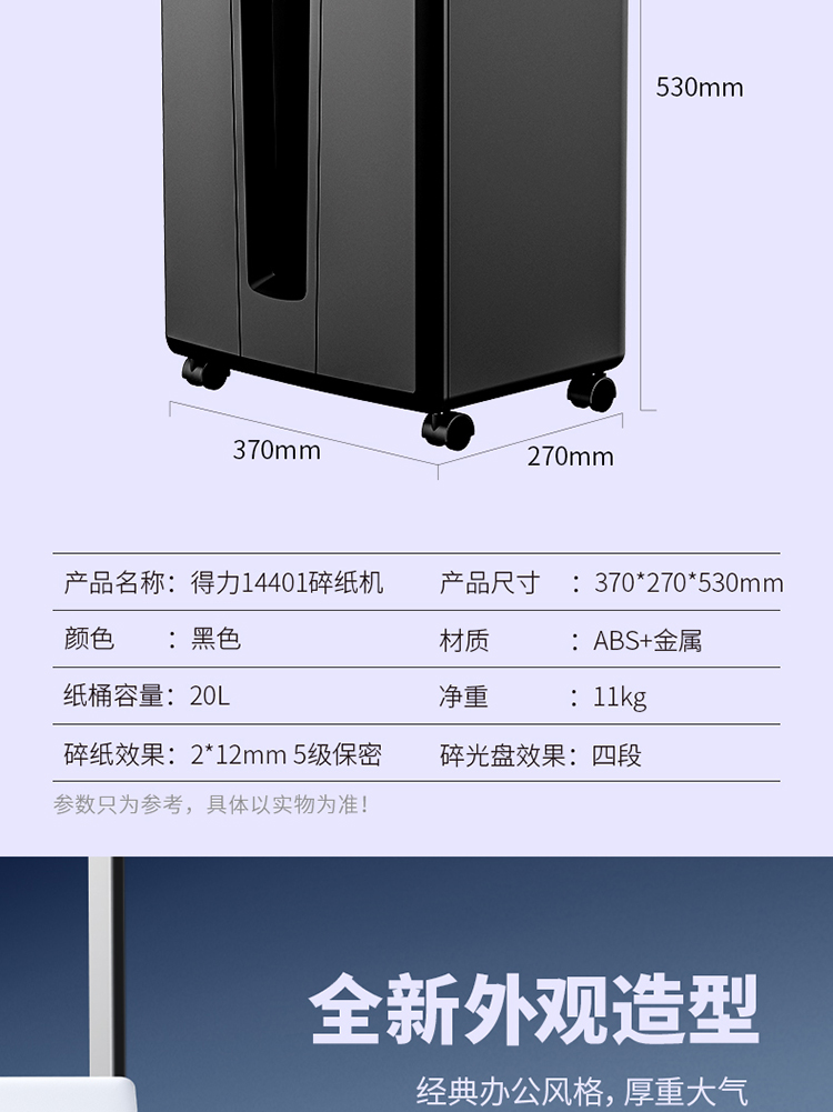 商品名称:得力14401碎纸机(黑)
