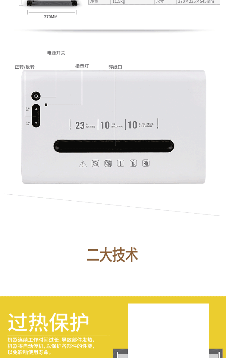 碎纸速度:1-2米/分钟