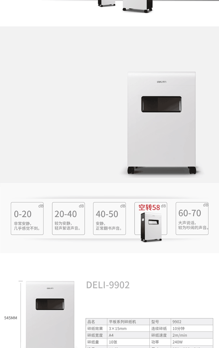 商品名称:得力9902碎纸机(白)(台)
