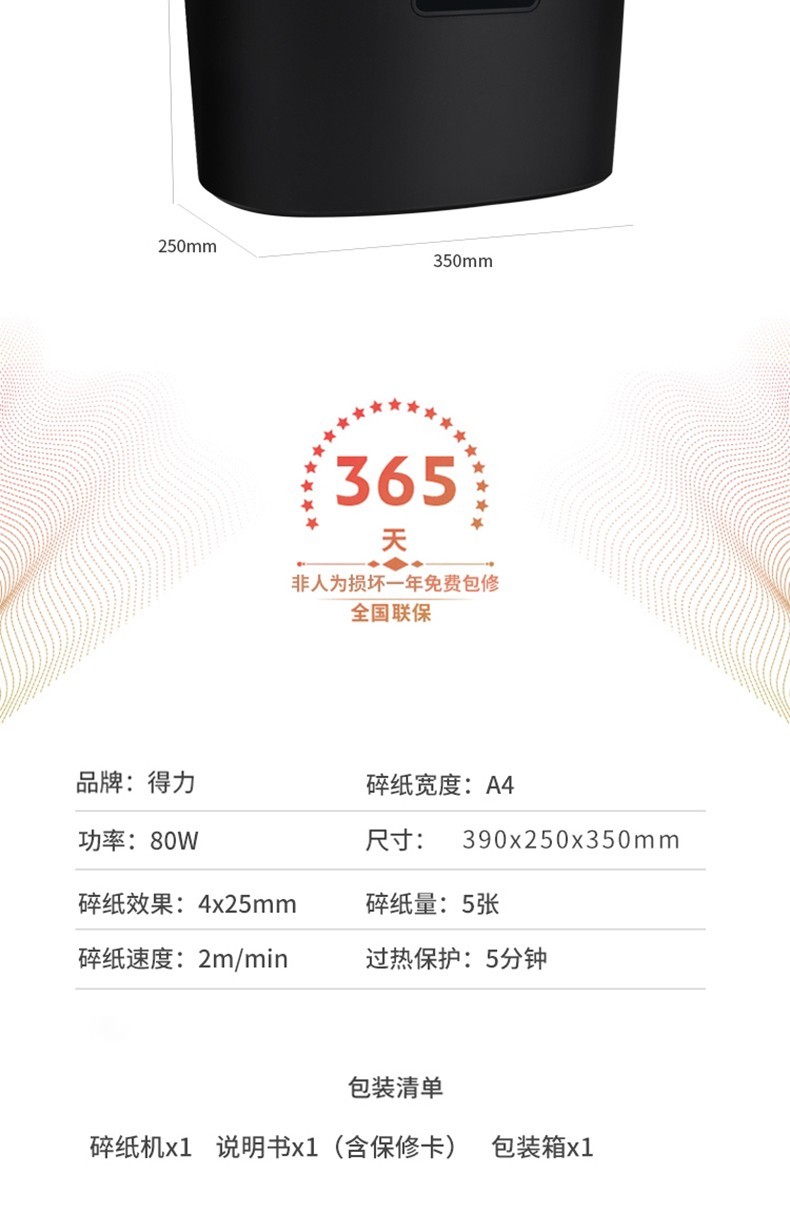 商品名称:得力9929碎纸机(白色)