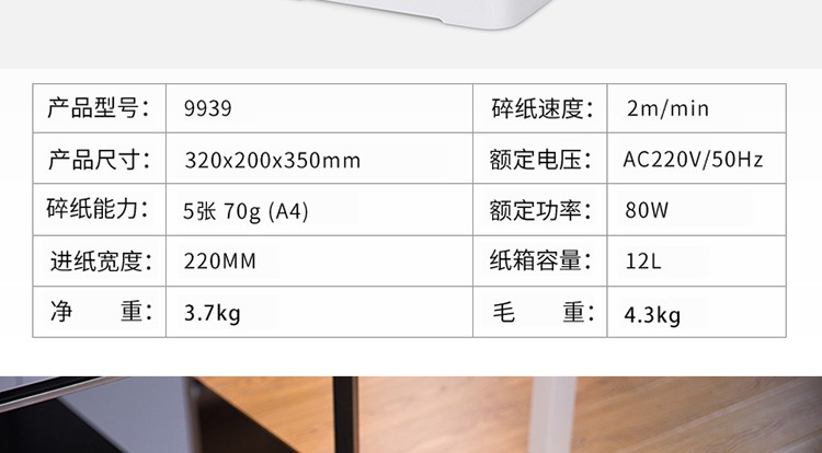 商品名称:得力9939碎纸机(白色)