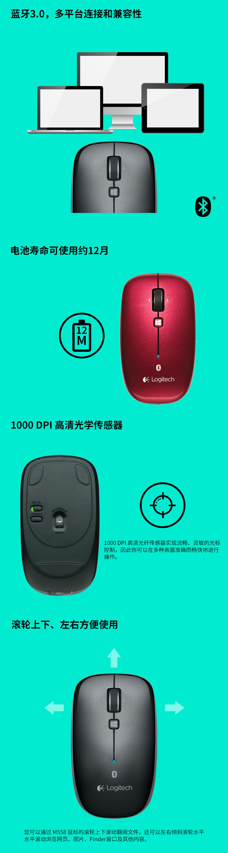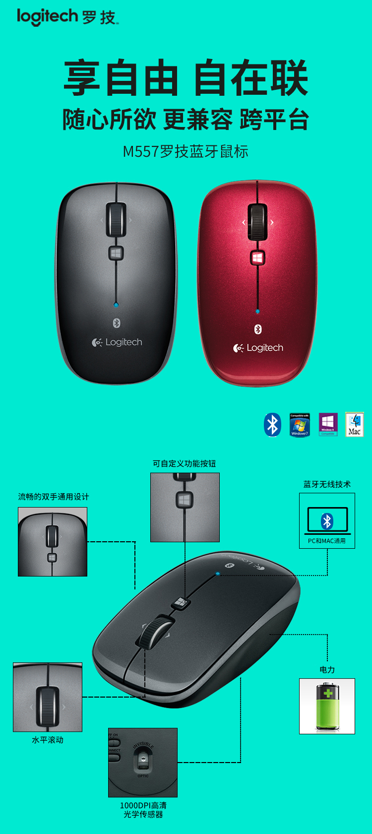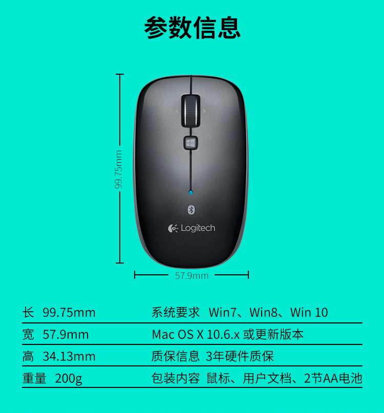 商品名称:罗技(Logitech) M557无线蓝牙笔记本电脑配件办公学习便携鼠标
