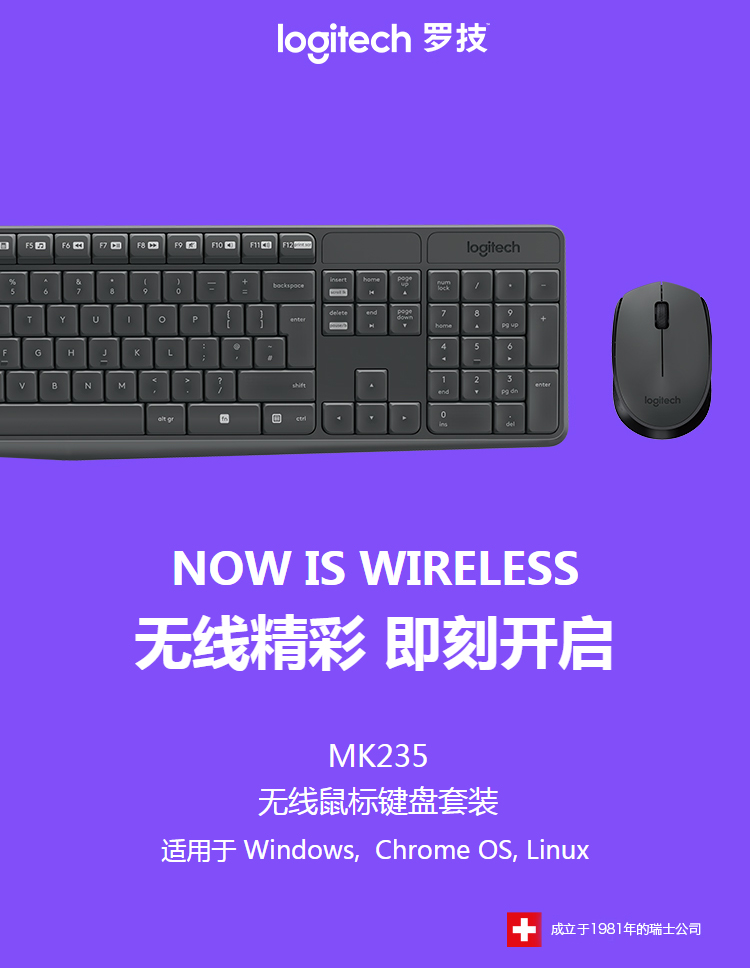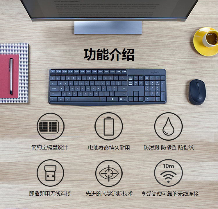 罗技(Logitech) MK235 无线键鼠套装防溅水键盘鼠标