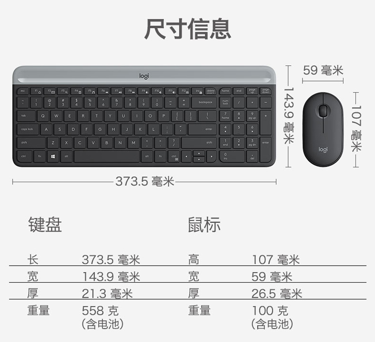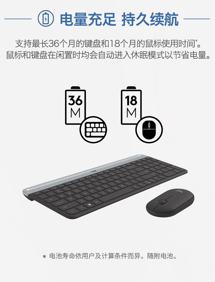 罗技(Logitech)MK470 键鼠套装 无线键鼠套装 全尺寸超薄 无线2.4G接收器