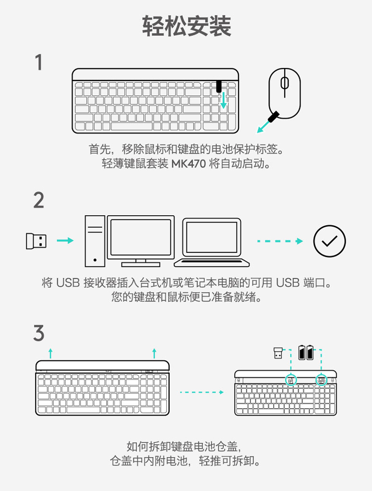 商品名称:罗技(Logitech)MK470 键鼠套装 无线键鼠套装 全尺寸超薄 无线2.4G接收器
