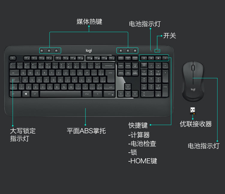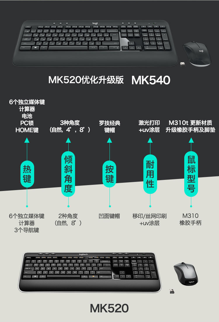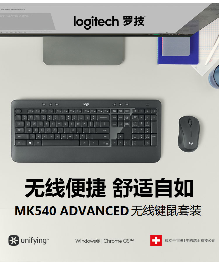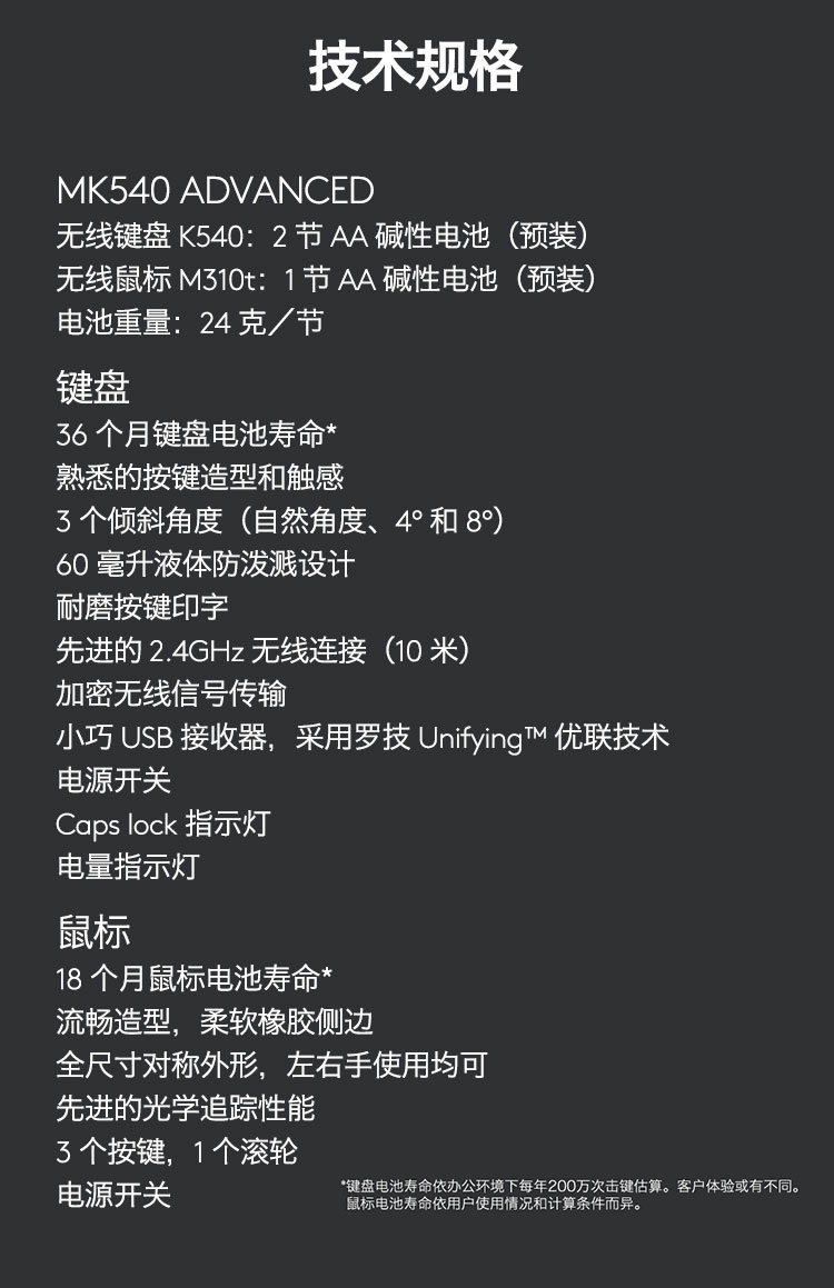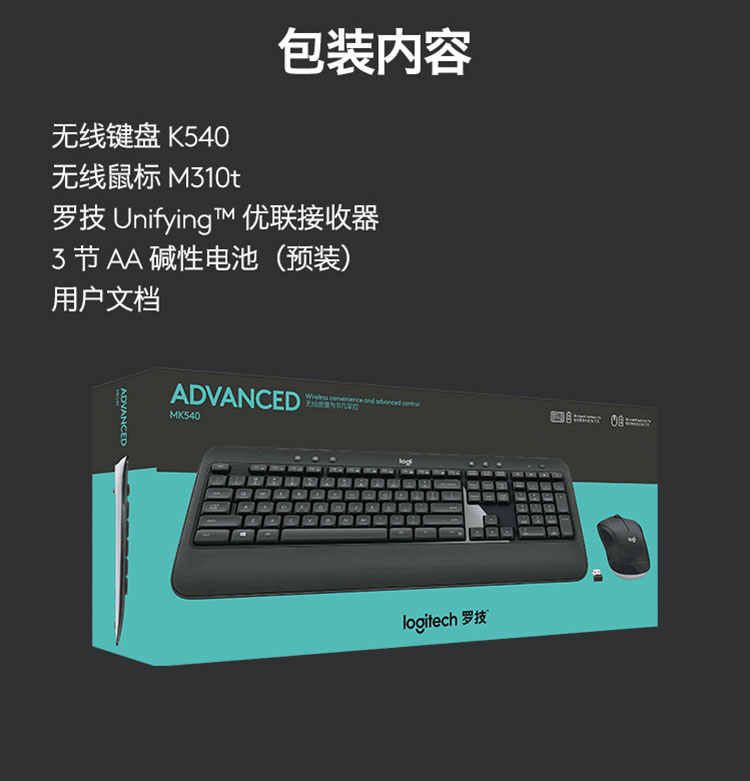 罗技(Logitech) MK540 无线键鼠套装 黑色 防泼溅