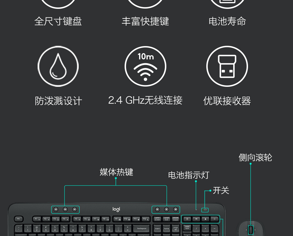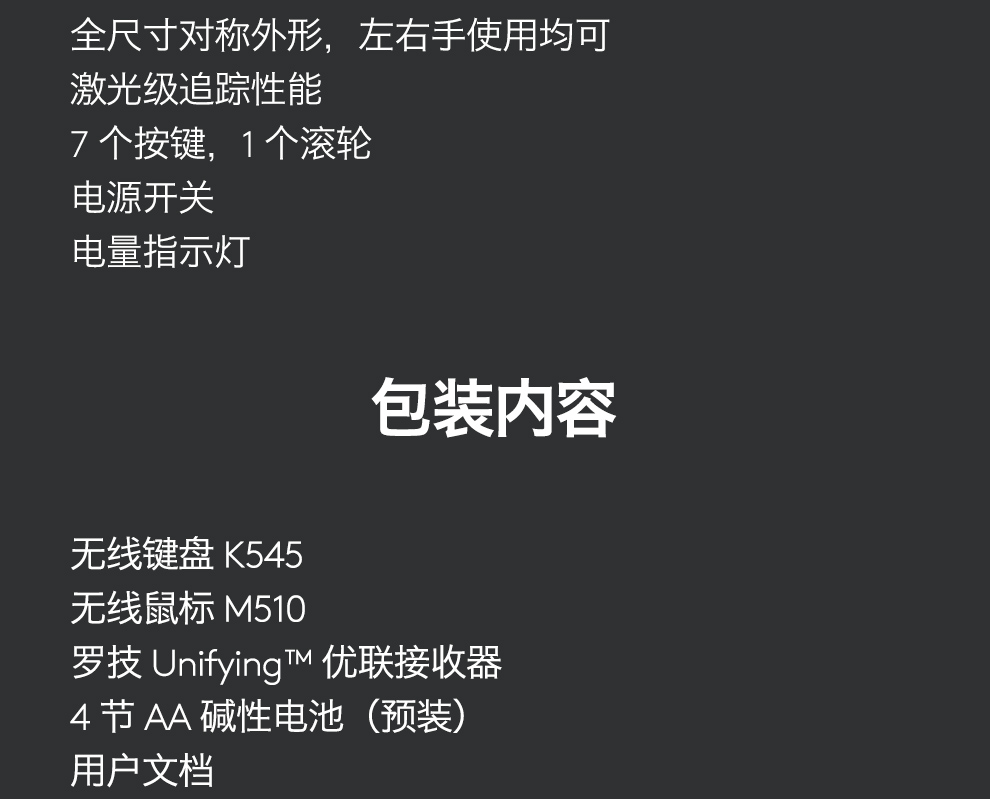 罗技(Logitech) MK545无线键鼠套装 黑色