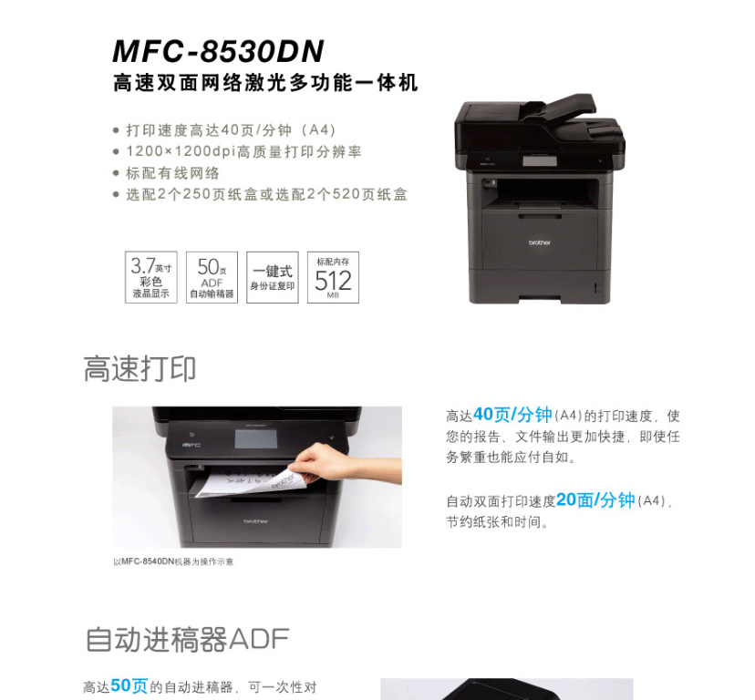 兄弟(brother)MFC-8530DN 高速双面网络激光多功能一体机 打印 复印 扫描 传真