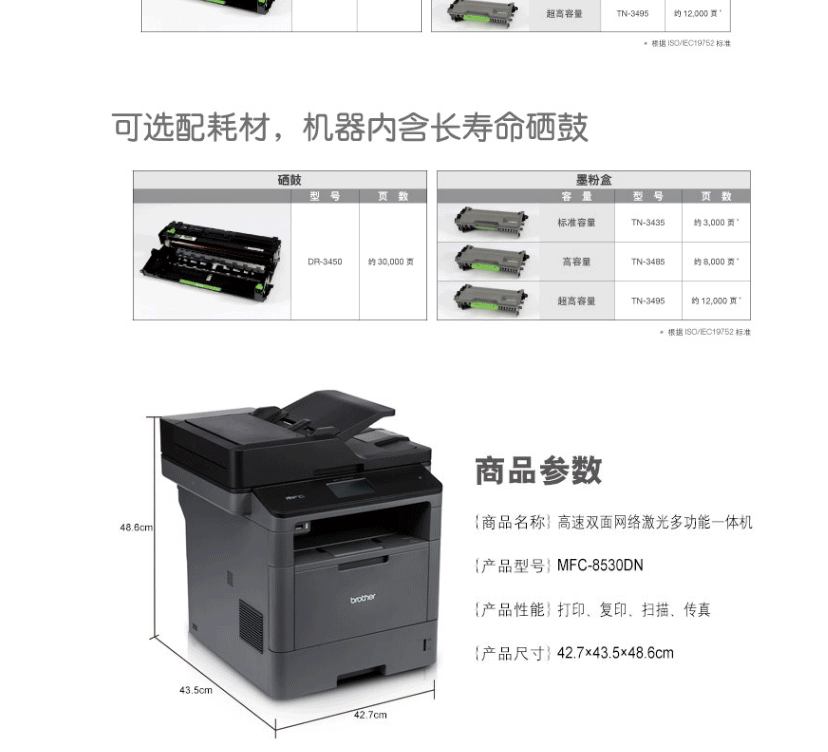 商品名称:兄弟(brother)MFC-8530DN 高速双面网络激光多功能一体机 打印 复印 扫描 传真