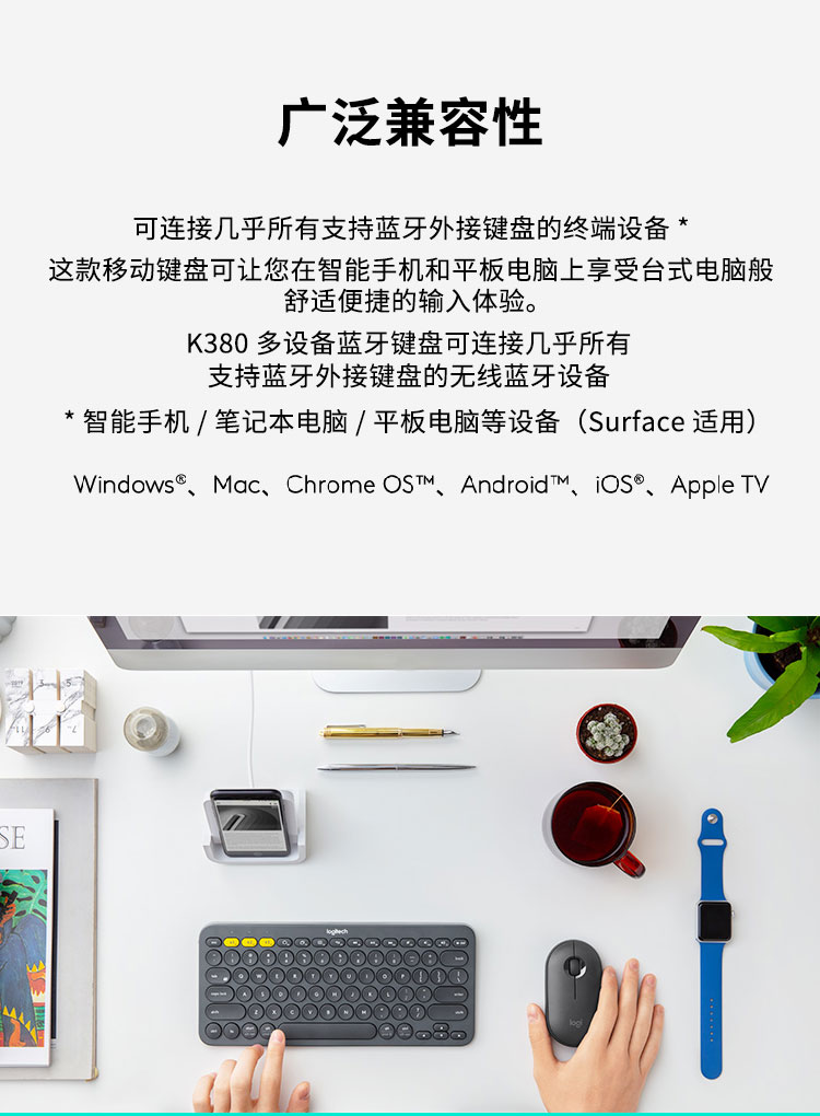 罗技(Logitech)K380 键盘 无线蓝牙键盘 办公键盘 便携