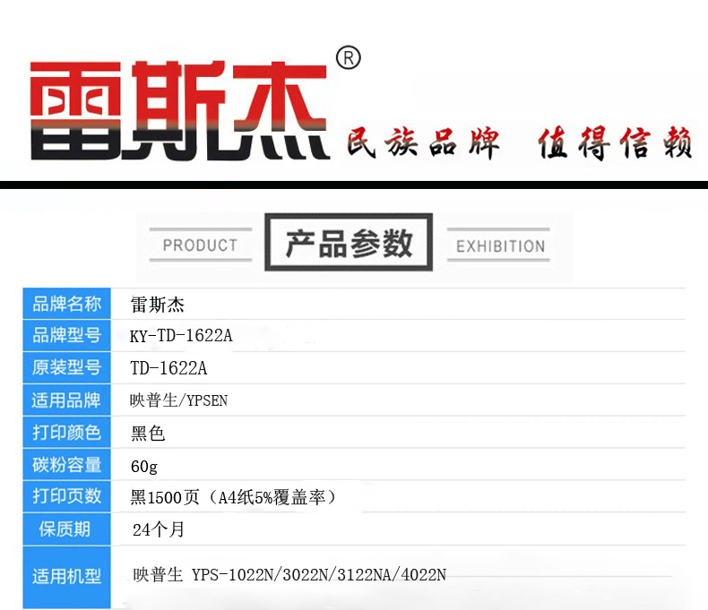 商品名称:雷斯杰 KY-映普生-TD1622A 黑色硒鼓 适用映普生:1622N/3200N/3122NA