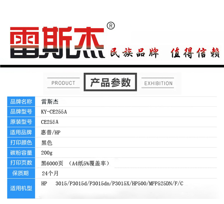 商品名称:雷斯杰 KY-CE255黑色硒鼓 适用惠普:HPP1566/1606/1536/202N