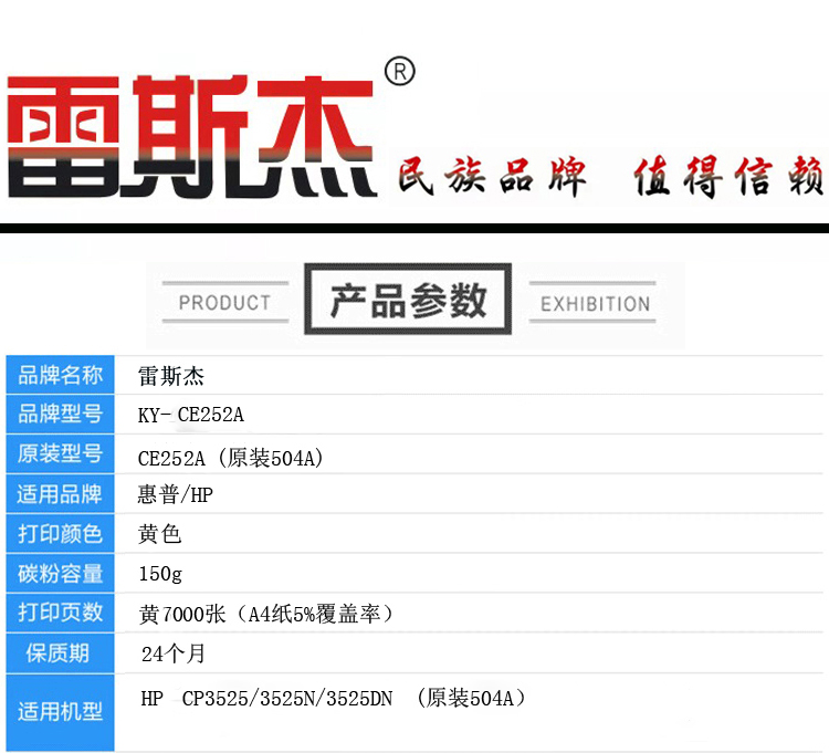 商品名称:雷斯杰 KY-CE252黄色硒鼓 适用惠普:HP CP3525/3525N/3525DN