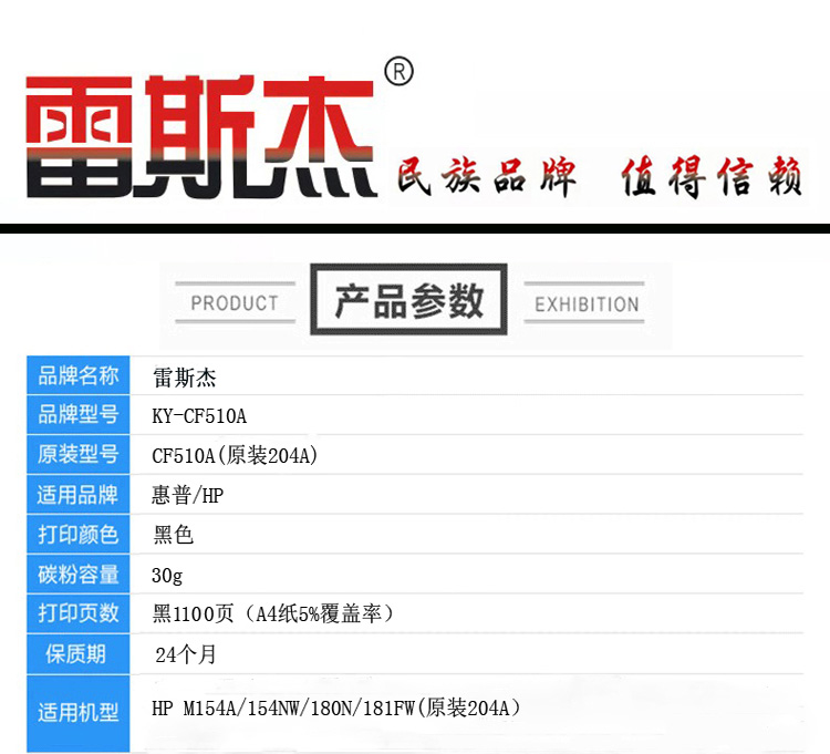 商品名称:雷斯杰 KY-CF510 黑色硒鼓 适用惠普:HP M154A/154NW/M180n/M181fw