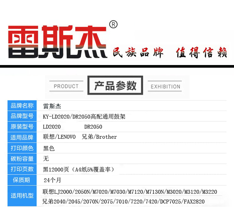 商品名称:雷斯杰 KY-LD2020(2000鼓) 黑色硒鼓 适用联想:LJ2000/2050N/M7020/M7030/M7120/M7130N/M3020/M3120/M3220